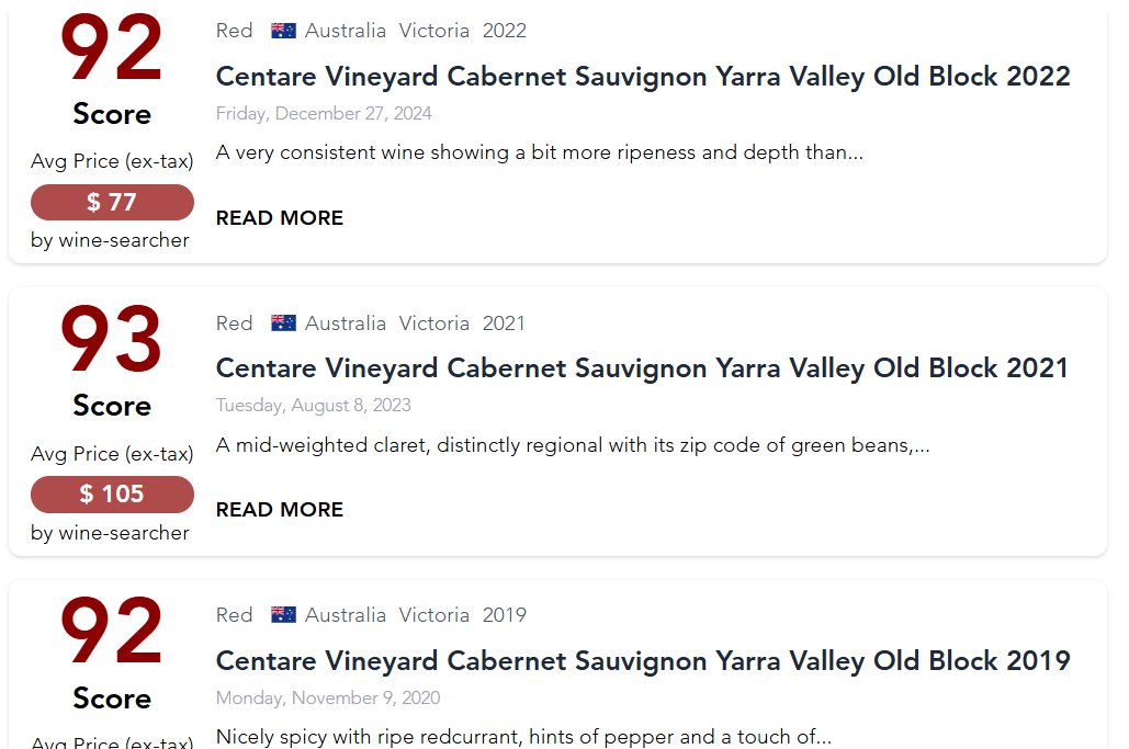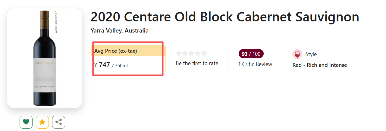 【国均5.4折!澳洲高密度种植标杆,雅拉谷单一园优雅赤霞珠!Centare Old Block Cabernet Sauvignon 2020