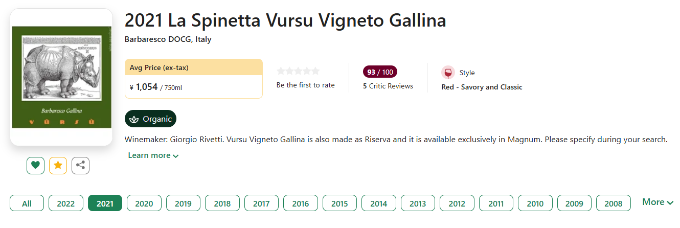 【低均超百元!巴罗洛臻彩大年,值得收藏的高分“绿犀牛”!】La Spinetta Vursu Vigneto Gallina Barbaresco DOCG 2021