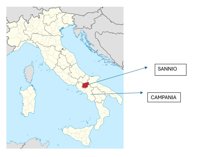 Sannio是位于意大利西南部Campania大区的丘陵地区,地跨Benevento与Avellino两省,处于那不勒斯北部。该产区于1997年获得法定产区(DOC)认证。自2010年起,原位于其边界内的数个小型DOC产区被纳入Sannio体系,成为其子产区。