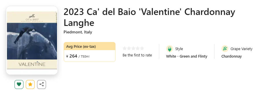 【国均9折!致敬勃艮第风格,艺术酒标Barbaresco先锋霞多丽!】Ca' del Baio 'Valentine' Chardonnay Langhe 2023