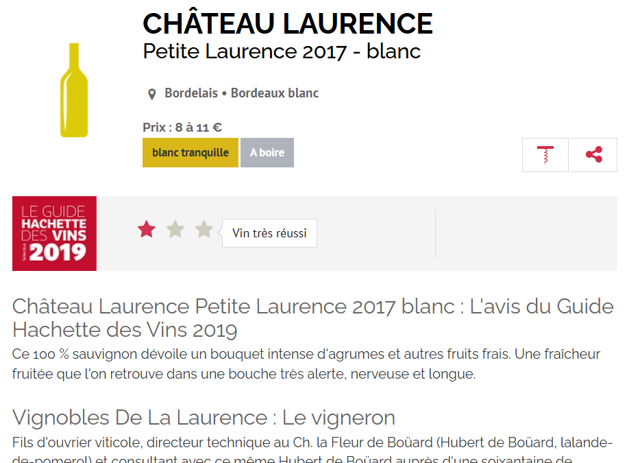 【单支不到25!金钟与博雅之花联手,经典波尔多白!】Chateau Laurence “Petite Laurence” Bordeaux AOC 2017 六支原箱