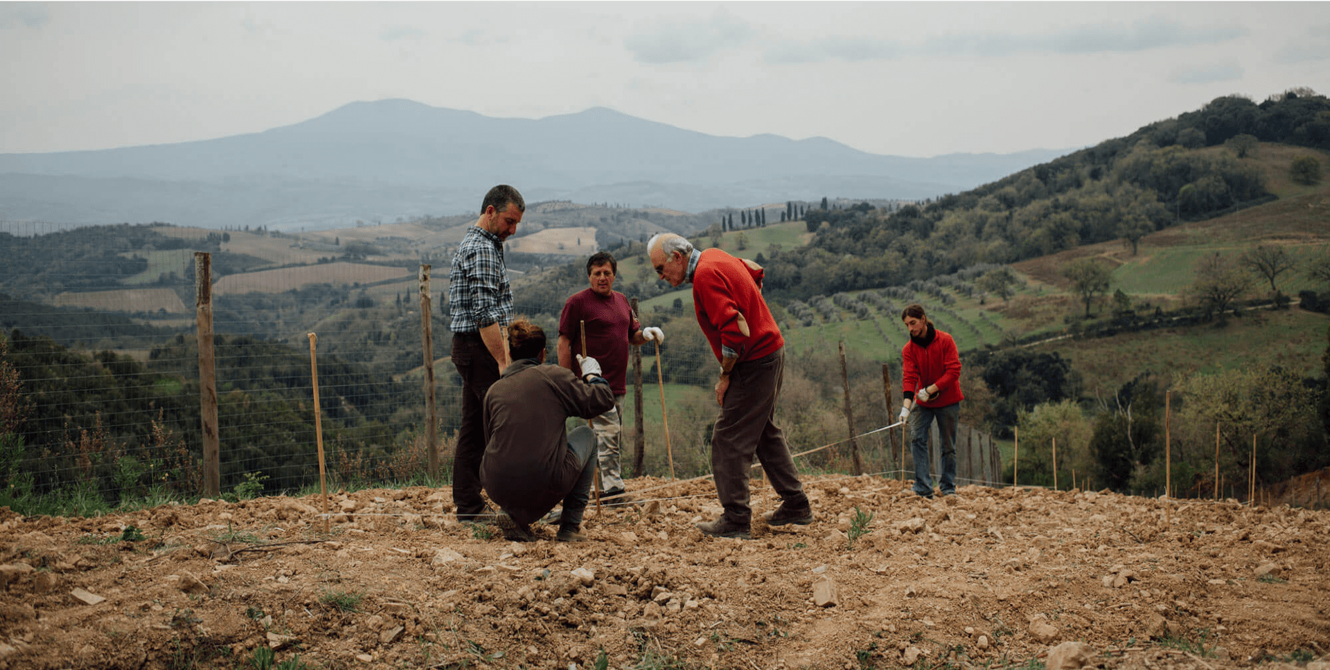 酒庄坐落在蒙塔奇诺东南部海拔420-500米的丘陵地带,11公顷庄园中4.5公顷为葡萄园,分为三大地块:Teatro、Sorgente、Piaggione。土壤以6000万年前形成的钙质泥灰岩为主,富含海洋化石与矿物质,为桑娇维塞提供独特的结构张力与矿物咸鲜感。葡萄藤平均树龄30年,采用全手工采摘,每公顷产量严格控制在3000升以下。