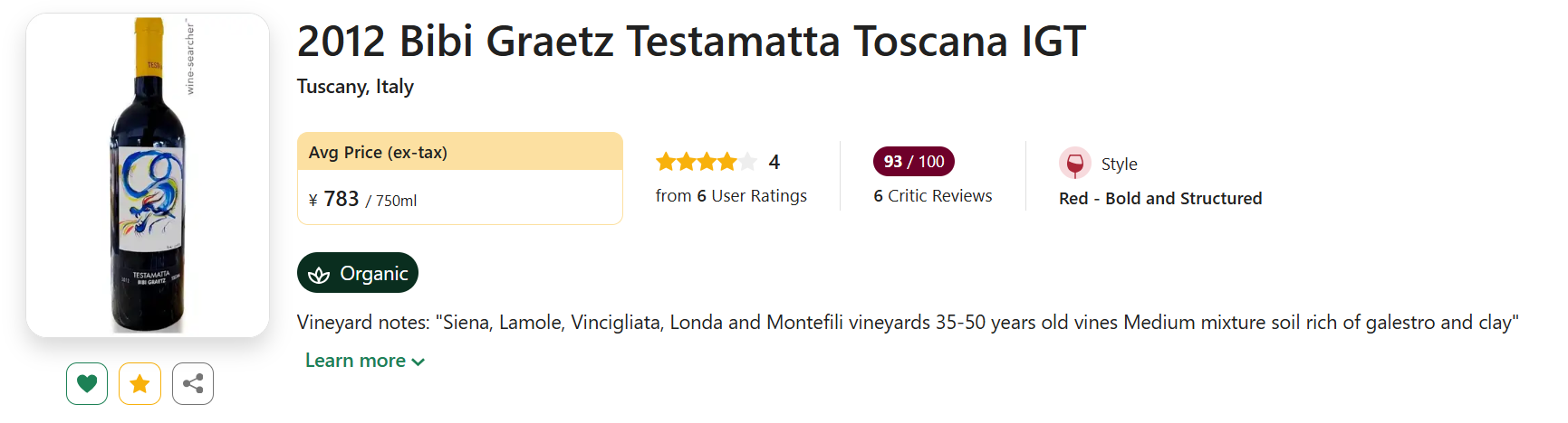 Bibi Graetz是《神之水滴》力荐的意大利膜拜庄,酒庄的主力款Testamatta在《神之水滴》上受到重点介绍,精选自酒庄非常优质的5块葡萄田,老藤年龄甚至高达80岁!
