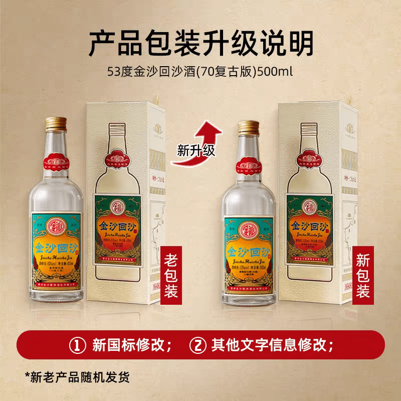 【金沙致敬经典之作,兼具老派醇厚与现代纯净感!】金沙回沙酒 70复古版 53度酱香型白酒 500ml 单支/六支原箱 直降!