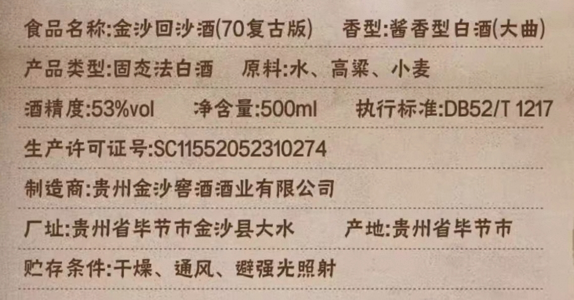 今天上新的这款 金沙回沙70复古版,复刻20世纪70年代金沙酒厂传统酱香工艺,坚守“12987”大曲坤沙酿造流程,即1年生产周期、2次投料、9次蒸煮、8次发酵、7次取酒;