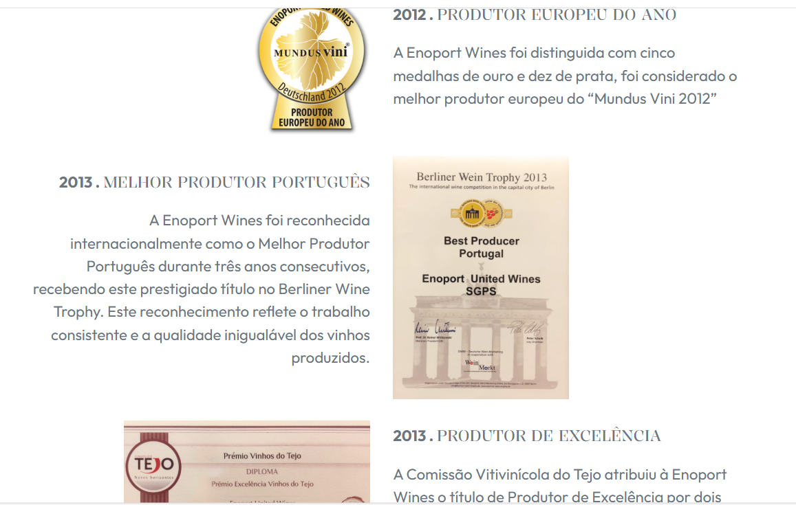 来自葡萄牙葡萄酒行业龙头集团Enoport United Wines旗下,集团曾连续被三年被Berlin Wine Trophy评为葡萄牙至佳生产商,更在Mundus Vini拿过“年度至佳”!累计获得了 1,400 多项奖牌、评分和殊荣,成绩斐然!