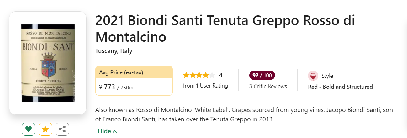 【意大利酒王佳品,媲美BDM的RDM!】Biondi Santi Tenuta Greppo Rosso di Montalcino 2021 单支/双支/六支 任选