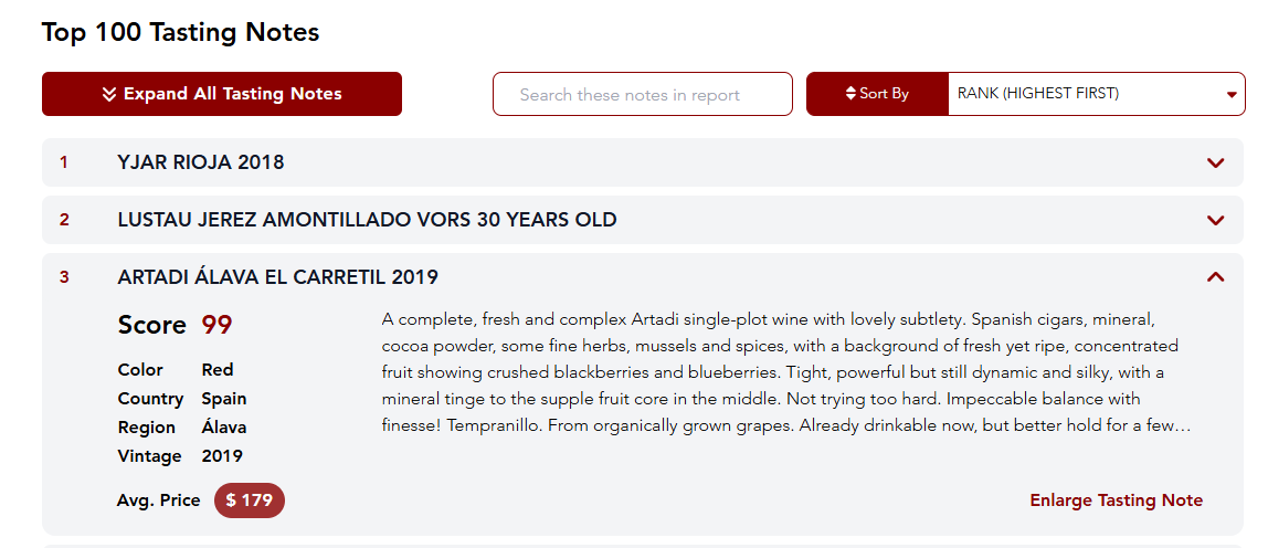 招牌酒款El Carretil单一园2019年份,恰逢优年加持(WA 93)一举斩获JS 99准满分,并高居JS 2022年度西班牙百大葡萄酒榜单季军!