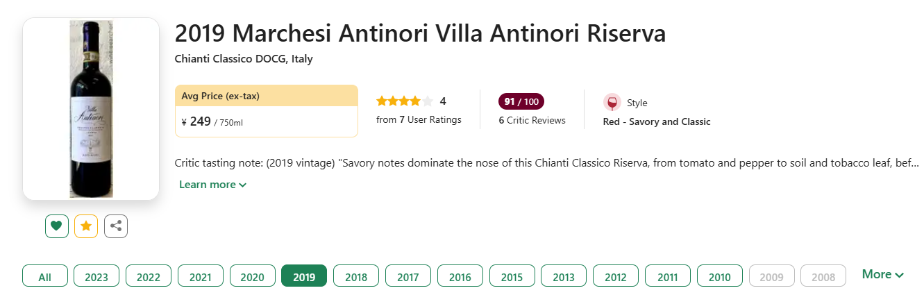 【年底冲销量啊啊!绝绝子好价喝“教科书”级CCR】Marchesi Antinori Villa Antinori Riserva Chianti Classico DOCG 2019 套餐自选