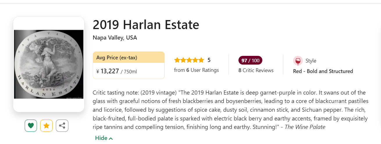 今年带来的就是Harlan正牌19年,此年份获得5个满分:WA、JS、JD、TWI、Decanter!