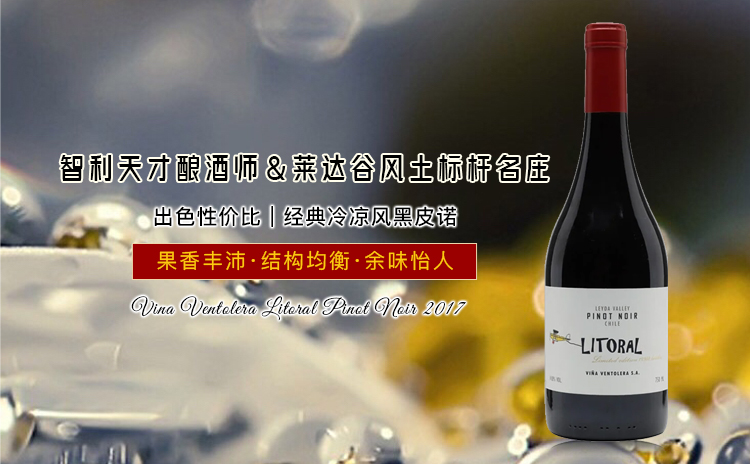 【全年份国均6.8折!智利塔尖酿酒师出品,勃艮第风黑皮诺!】Vina Ventolera Litoral Pinot Noir 2017