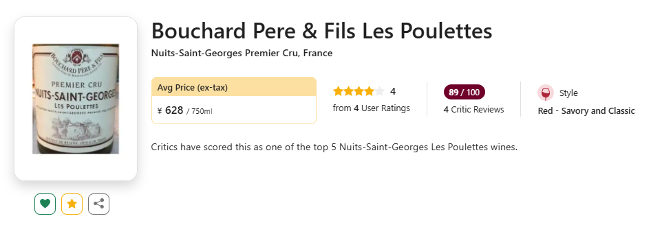 【全年份国均8折!CC二星“宝尚父子”,优年NSG代表一级园!】Bouchard Pere & Fils Les Poulettes Nuits-Saint-Georges Premier Cru 2014