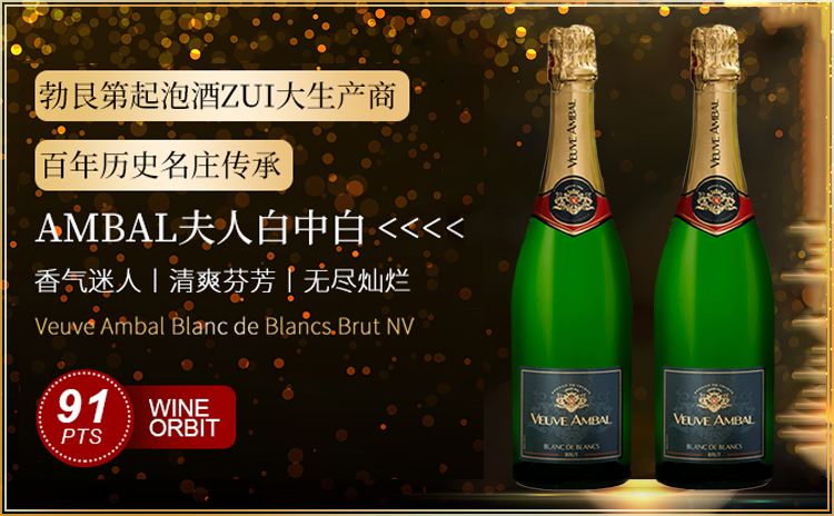 【口碑爆款!Ambal夫人白中白起泡,媲美香槟!】Veuve Ambal Blanc de Blancs Brut NV 双支/六支原箱/五箱囤货装