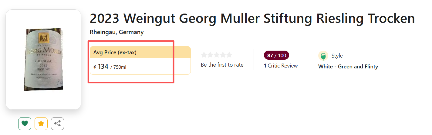 【国均7.4折!VDP创始元老名庄出品,柠檬矿物真的超带感!】Weingut Georg Muller Stiftung Riesling Trocken 2023 单支/双支/六支原箱 现货速发