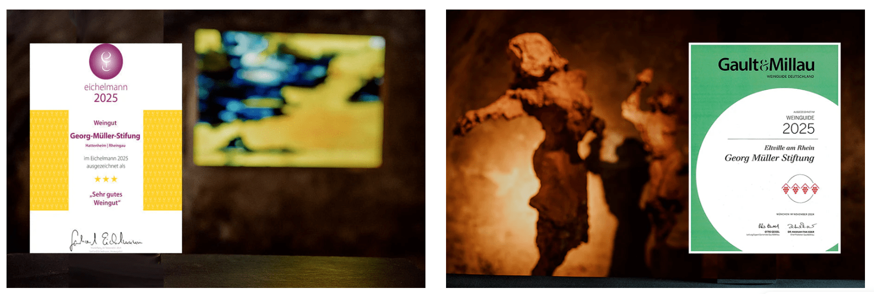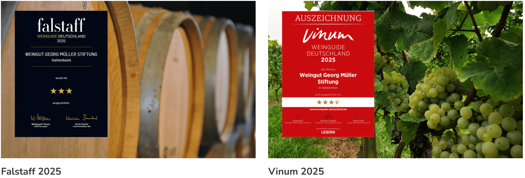 在2024年ProWein展会上第七次荣膺Mundus Vini“德国年度酒庄”大奖;自2020年起连续获得Falstaff三星评级,2025年再度蝉联!出品葡萄酒更是屡获G&M 四串葡萄,足见其实力出众!