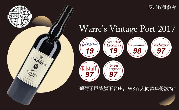 【国均7.7折!世纪大年双准满分,WS百大同款“不朽之酒”!】Warre's Vintage Port 2017 现货