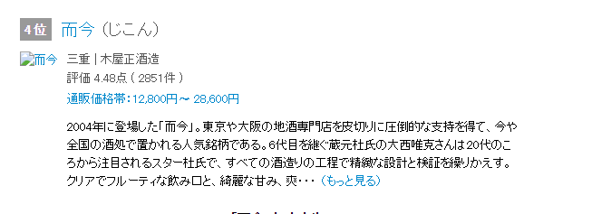 酒造与十四代、飞露喜并称为BIG 3,堪称膜拜级别的标杆代表,入手及其困难,就连在日本也限量发售,甚至只能抽签获得配额! 2022年末的Saketimes排名中,而今位列日本全国第四位,而在三重县则排名第一!