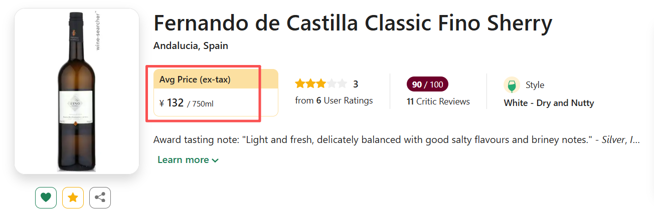 性价比无可挑剔,当属是探索雪利酒世界、体验“西班牙瓶中阳光风味”的优选!