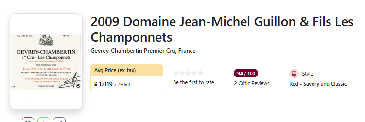 【国均7.8折!阿歇特指南教科书级名家,大年超值一级园!】Domaine Jean-Michel Guillon & Fils Les Champonnets Gevrey-Chambertin Premier Cru 2009
