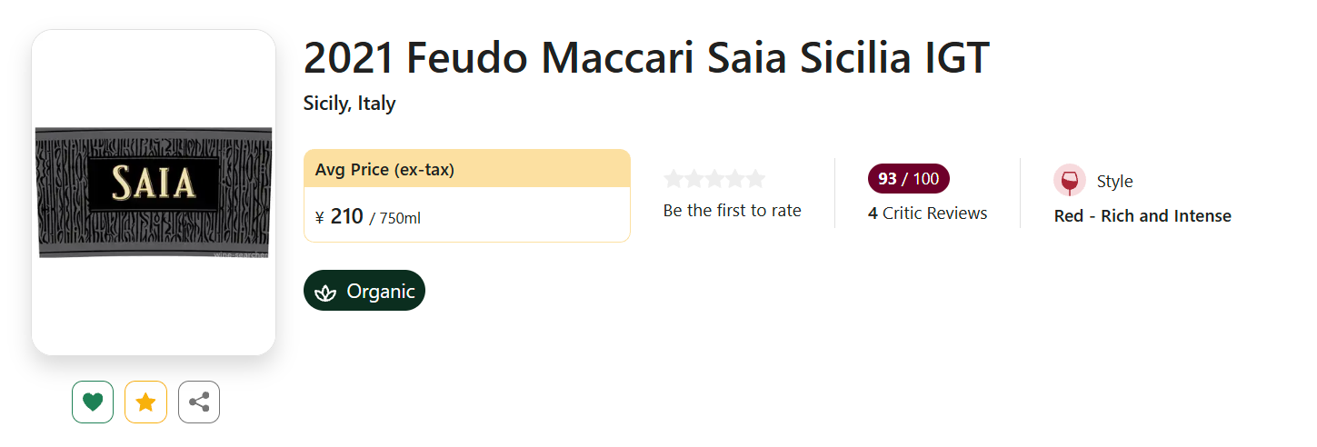 【100%中奖!发布酒评参与免费送同款! 酒云超十年经久不衰爆款大作】Feudo Maccari Saia 2021 单支/双支/六支 现货速发!