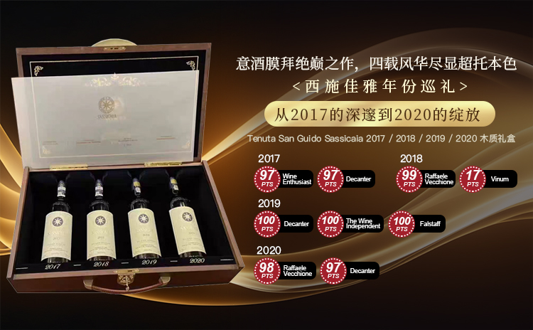【意酒之King:西施佳雅2017-2020垂直品鉴指南!】Tenuta San Guido Sassicaia 2017 / 2018 / 2019 / 2020 木质礼盒