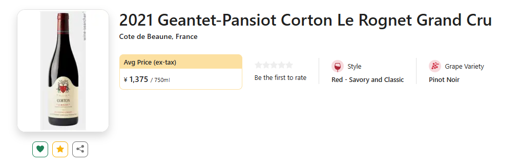 本次带来的2021年份Corton特级园Le Rognet,恰逢产区优年加持,表现力出色!