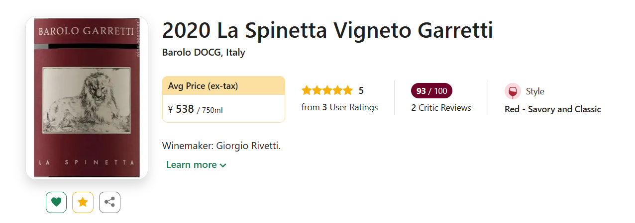 【年终冲量好价!巴罗洛传奇犀牛庄 | 花果香交织的优雅绅士】La Spinetta Garretti Barolo DOCG 2020