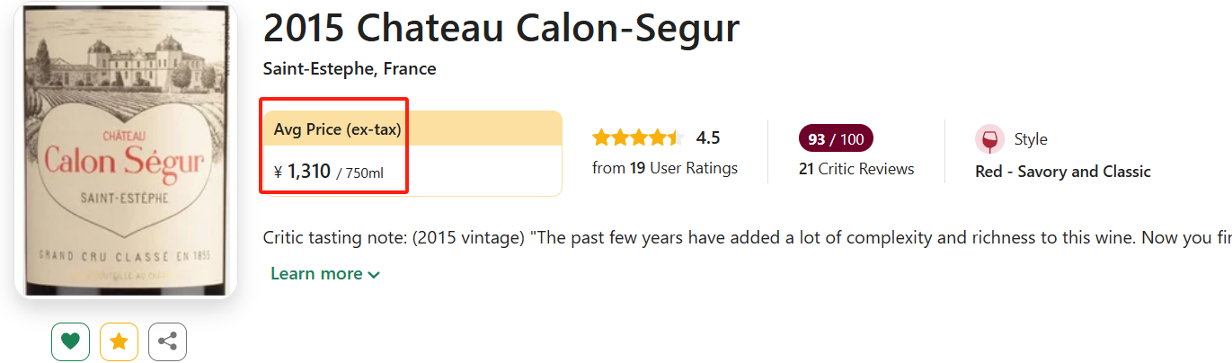 【低均好价!“红心庄”凯隆世家,适饮大年高分正牌!】Chateau Calon-Segur Saint-Estephe 2015