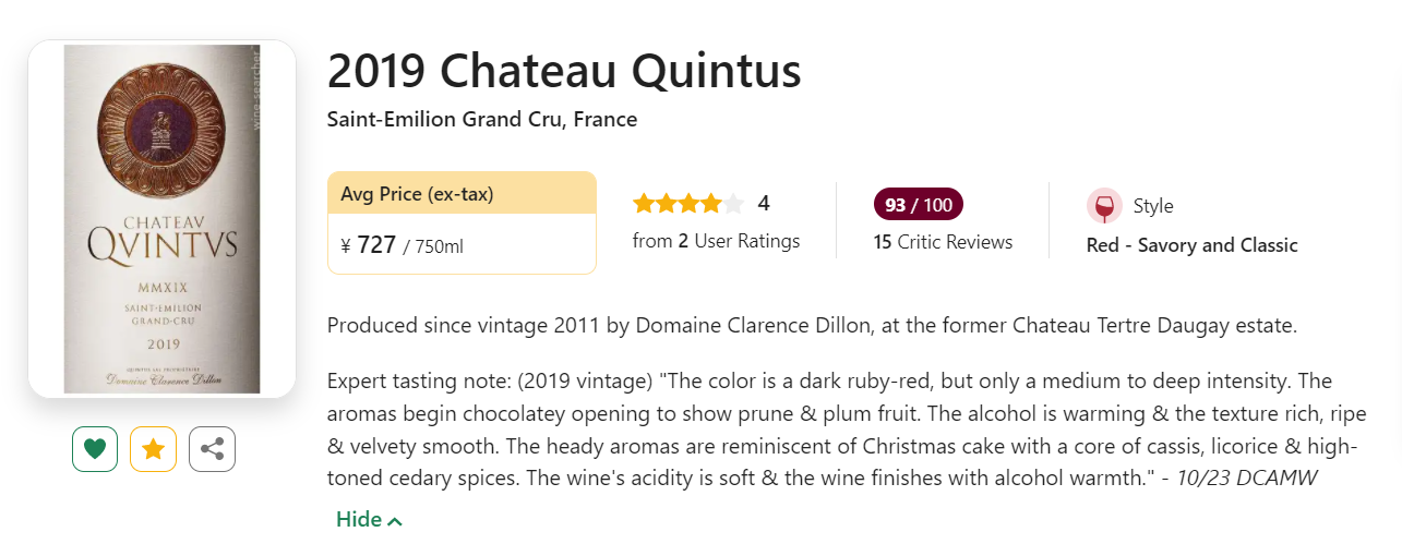 【与侯伯王、美讯共享同一支顶尖的酿酒团队!】Chateau Quintus 2019