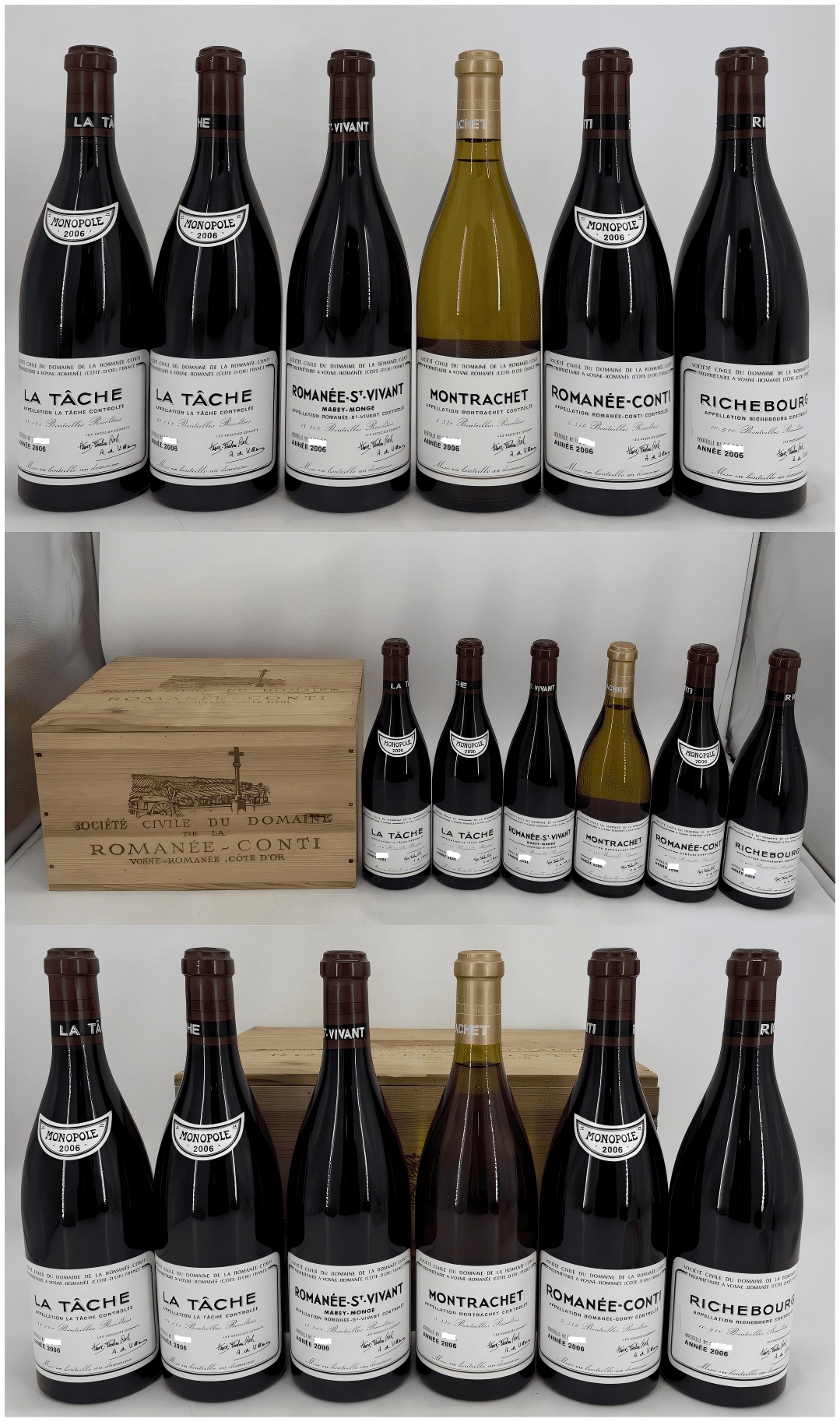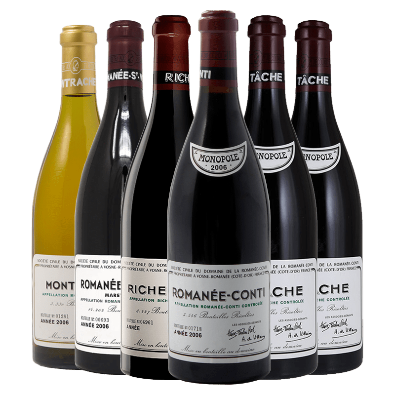 【收藏界的“圣杯”!传奇无需赘言,DRC五大名园平行老年份!】Domaine de la Romanee-Conti Romanee-Conti Grand Cru / La Tache Grand Cru Monopole / Richebourg Grand Cru / Romanee-Saint-Vivant Grand Cru / Montrachet Grand Cru 2006 六支原箱套装