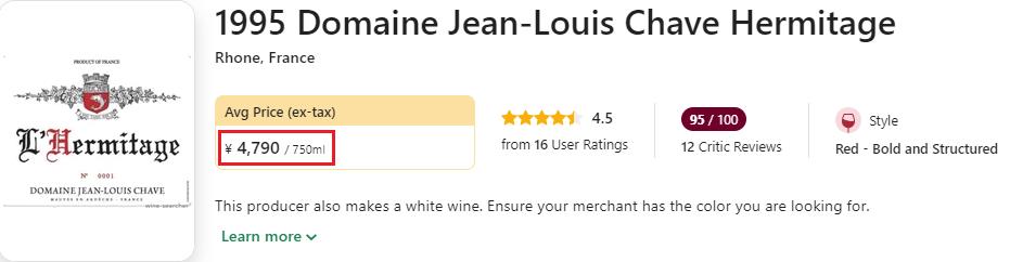 【国均8.3折!北隆实力膜拜庄,准满分Hermitage!】Domaine Jean-Louis Chave Hermitage 1995