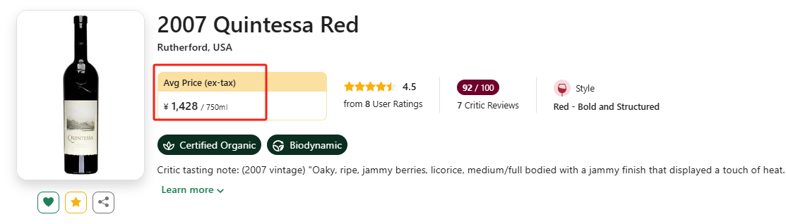 纳帕“膜拜庄中的膜拜庄”昆塔莎,2007年份旗舰波混斩获WE 95、JR 18.5高分好评!