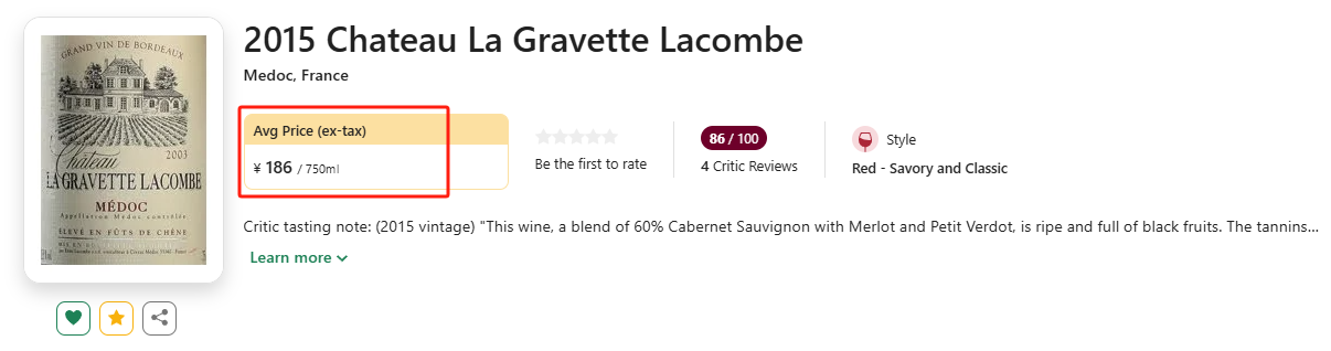 好货返场!酒友好评如潮、性价比高到爆的大年优秀中级庄Chateau La Gravette Lacombe 2015回归!