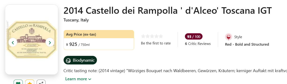 本旗舰款'd'Alceo' ,由超托之父Giacomo Tachis坐镇,2014年份斩获JS & AG & WE 95、Vinum18高分大赞!Vivino评分高达4.4!(评条数5000+!)话不多说,抓紧冲!