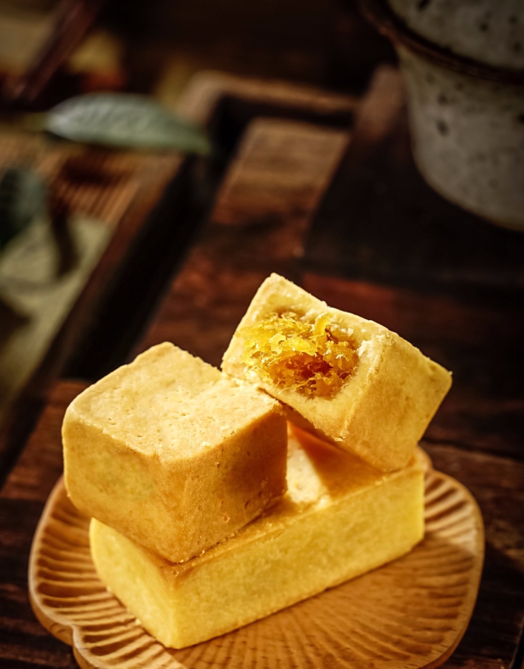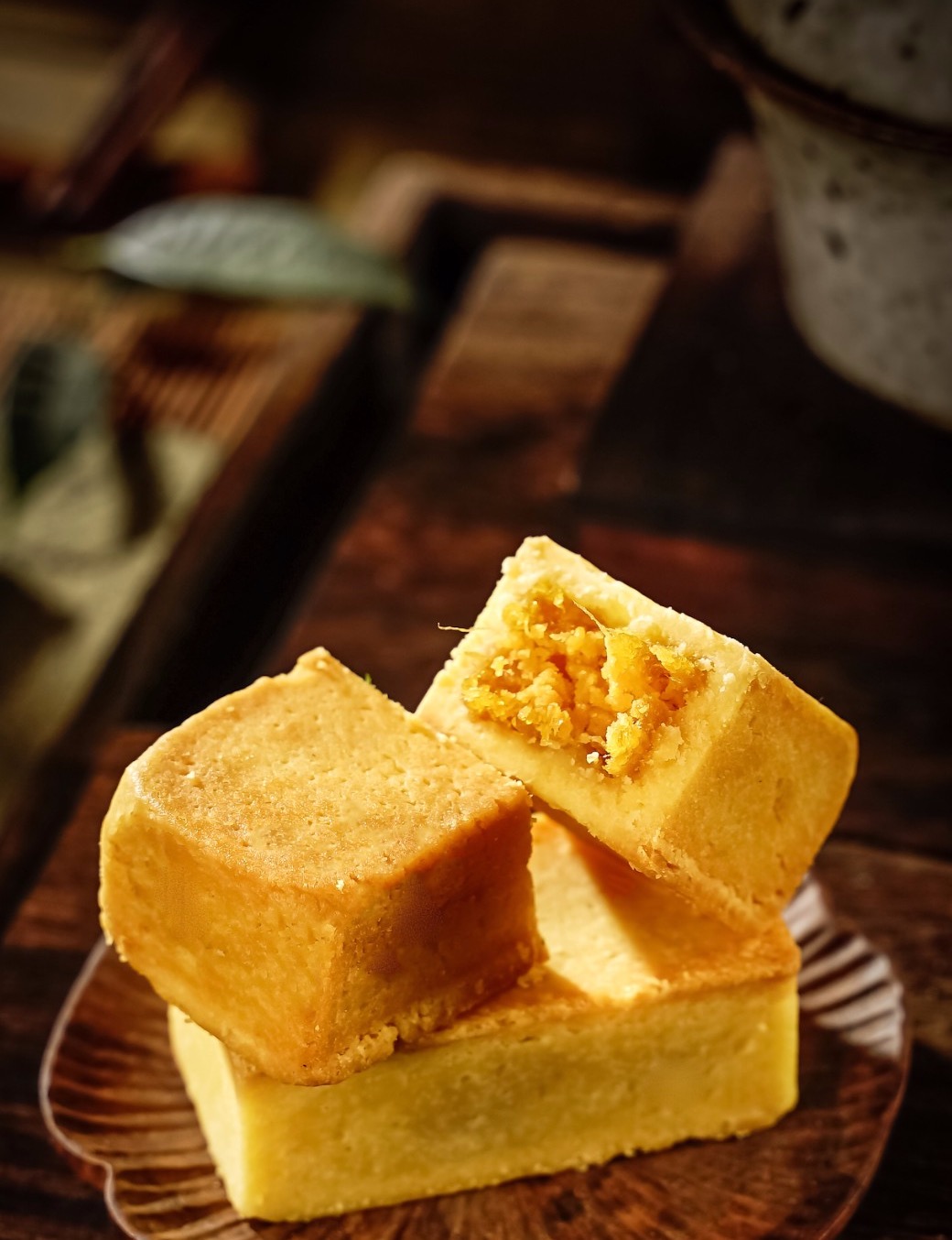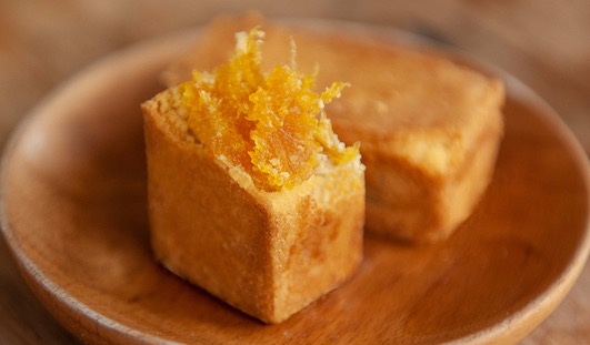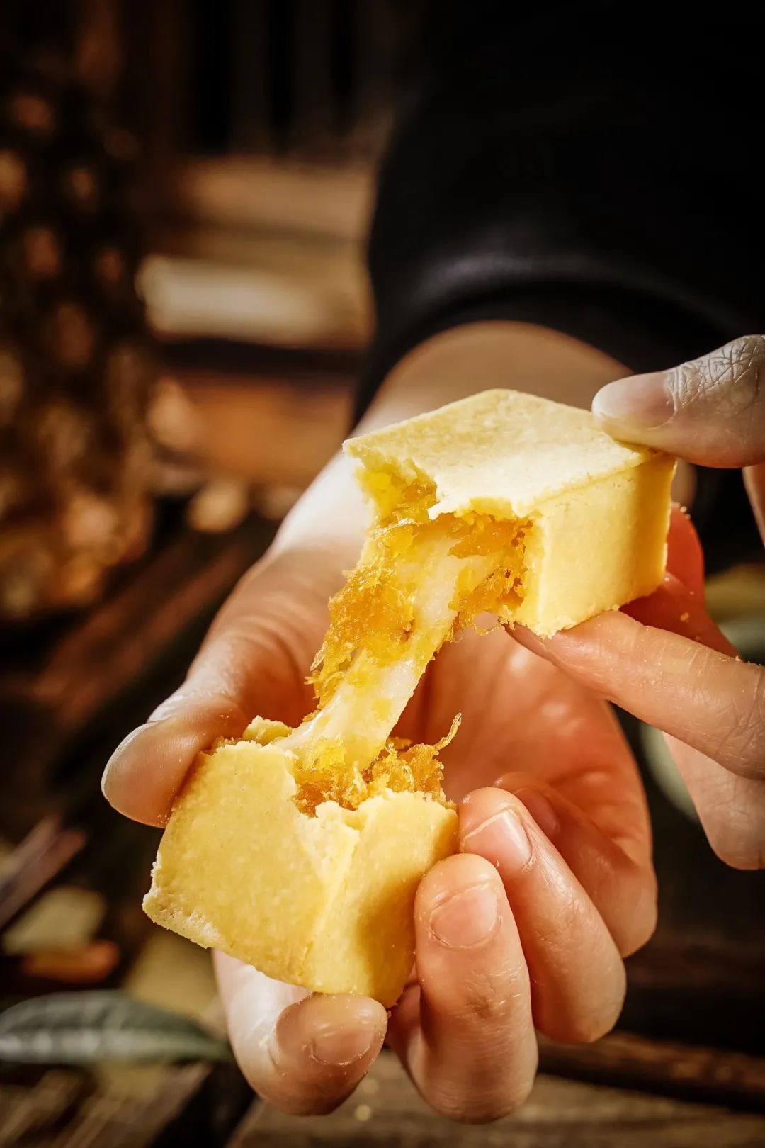 是将咸蛋黄研沙包裹进凤梨馅心中,蛋黄采用古法“草木灰法”腌制,松香出油、饱满起沙,吃上一口,就知道普通蛋黄不可与它同日而语,蛋黄的微咸和凤梨的酸甜碰撞出了高辨识度的玄妙风味,创建了新的、更有纵深感的味觉维度。