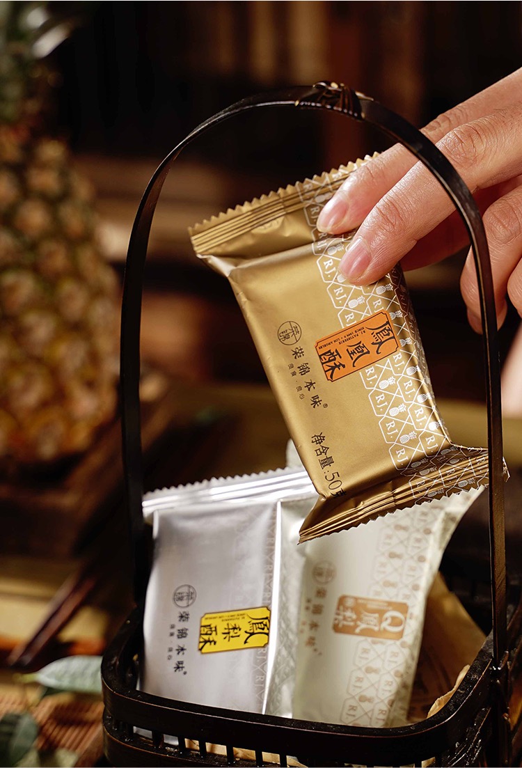馅心中包裹了黑糖麻糬,有克制的甜萦绕在凤梨香气的味觉丛林,从内而外,刷新你对凤梨酥的固有认知。