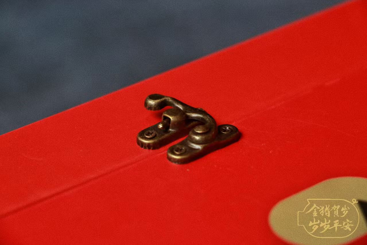 “金猪贺岁”礼盒不仅美味,包装也彰显档次。外包装选用厚重的正红色手提礼箱,配搭金属扣件和提手,工艺考究,质感高档。寓意着红红火火的美好祝愿,是春节送礼的体面之选。