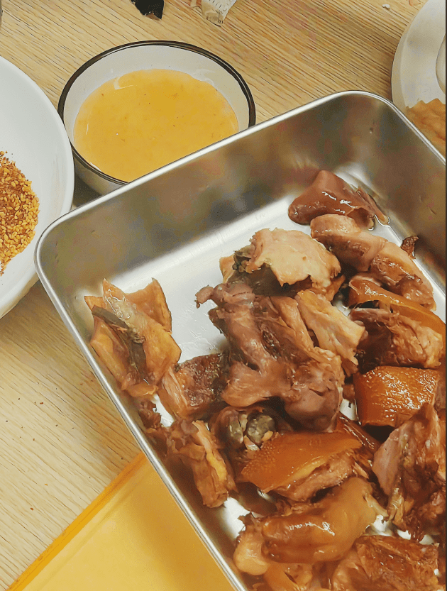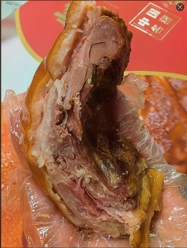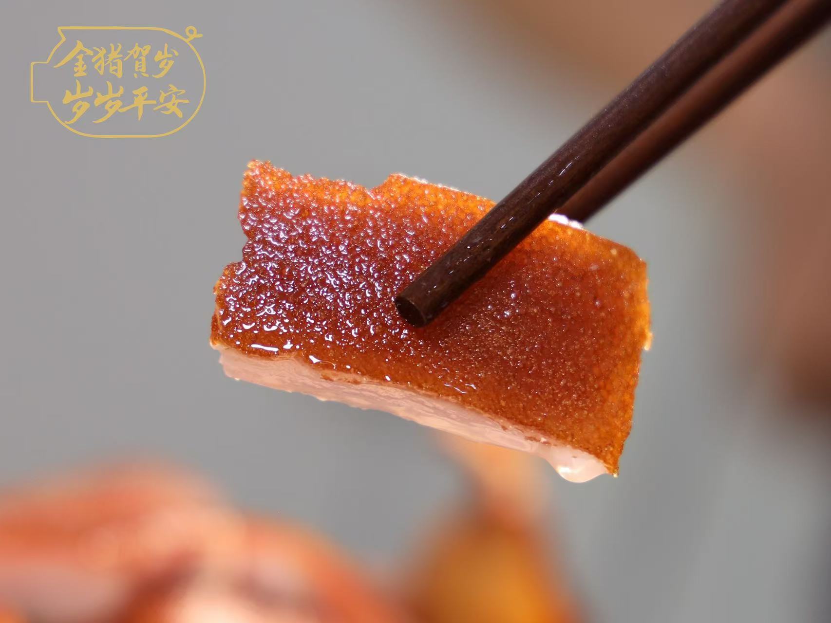 先不说新鲜程度无法对标,一开袋的香味就不同,这个没有腥味,开袋后是淡淡的草果茴香等香料味,加热后猪皮的焦香,商家有心的配了酸梅酱和辣椒粉,皮我觉得还是配白糖更香。乳猪蹄香香糯糯,还有汁水,瘦肉也不柴,这样一个单品,过年放桌上,妥妥的硬菜。带地理标志的荣昌烤乳猪礼盒包装也很贴心,发货还配了珍珠棉防震,快递箱也厚实。有点小贵,但我真心推荐!