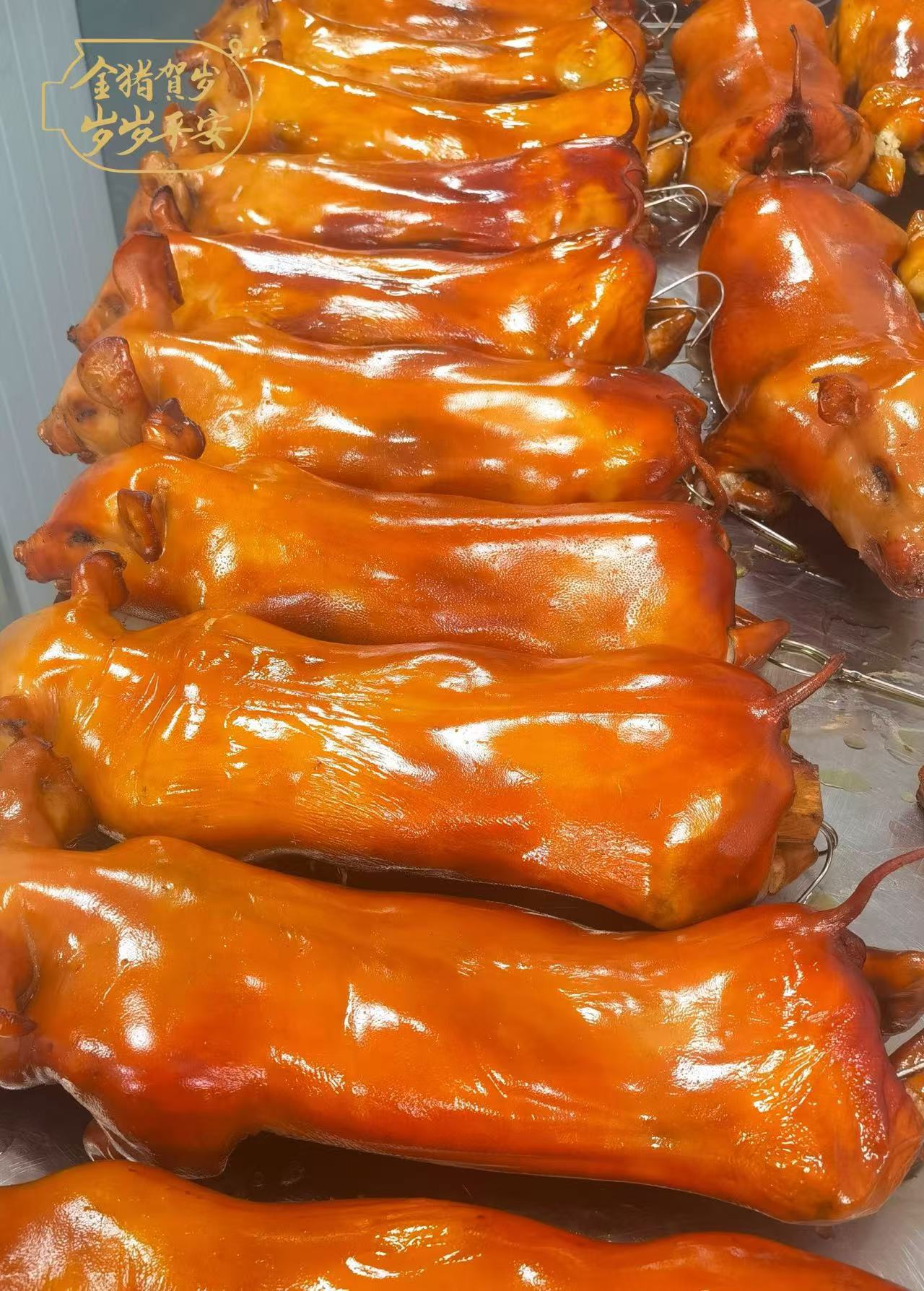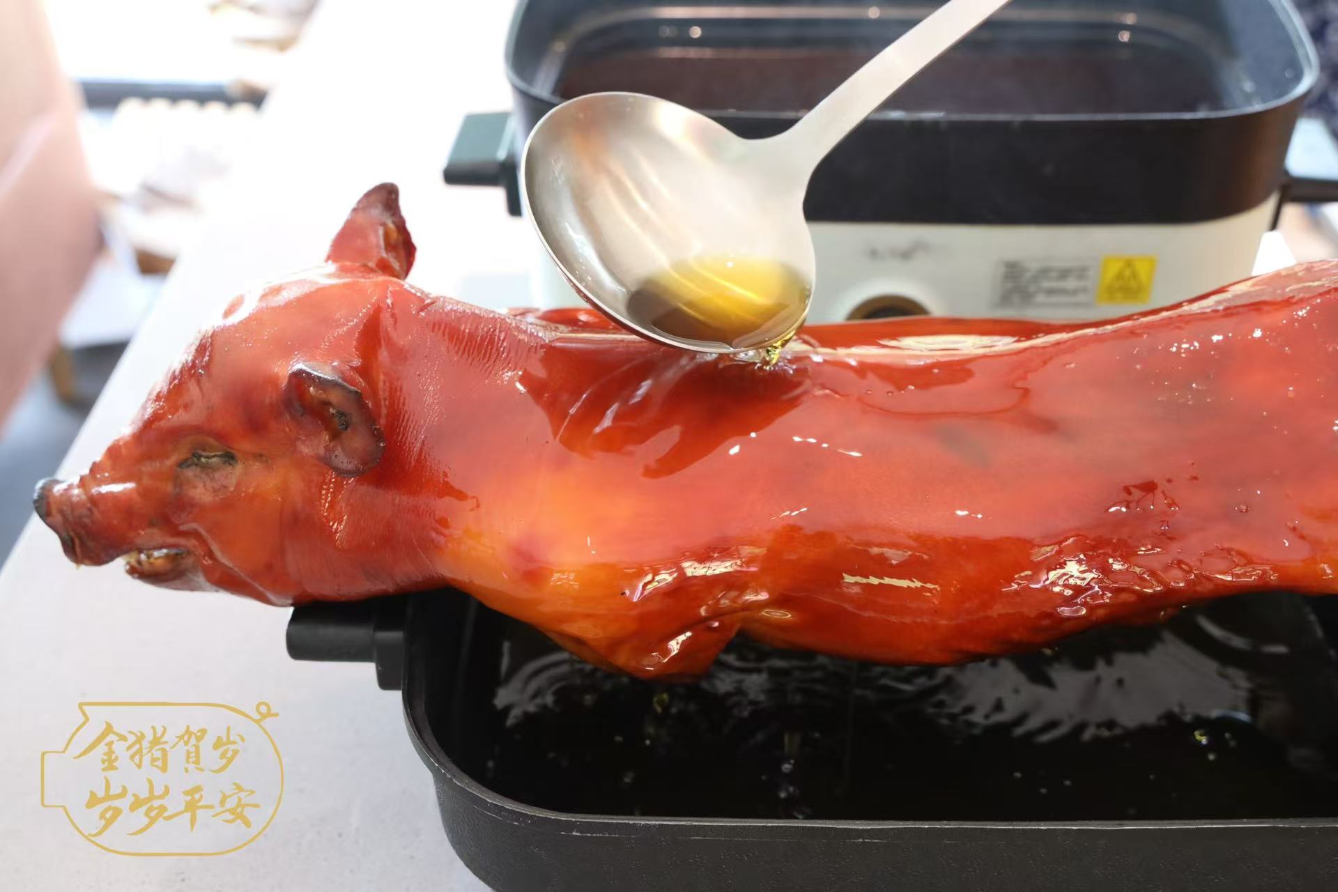 在我国很多地区,逢年过节或有重要活动时,都要准备烤乳猪,讲究的是“红皮赤壮”意头,以烤乳猪象征风调雨顺,事业红火,寄托着人们向往美好生活的愿望!