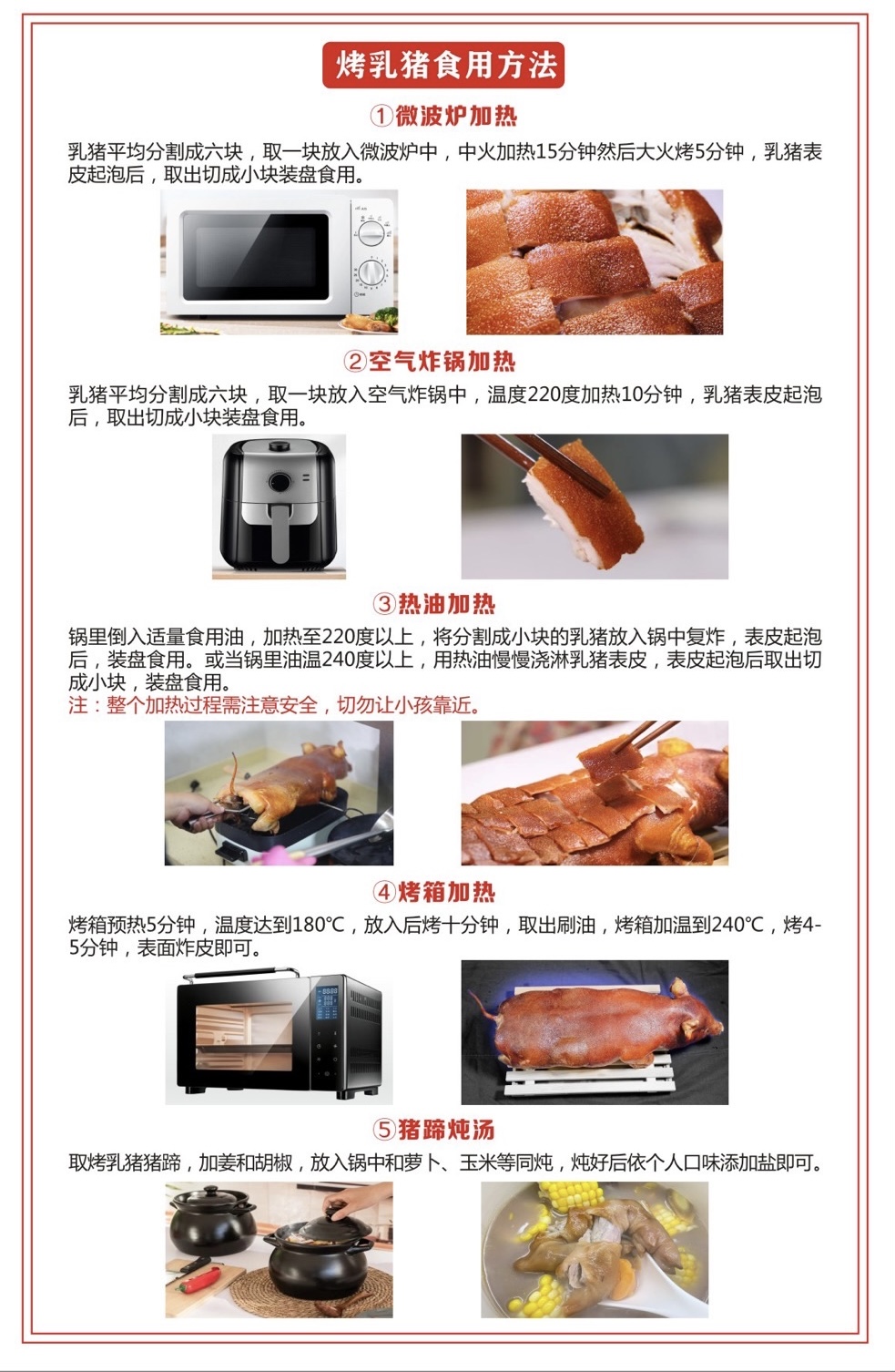 担心收到礼盒不知道怎么食用?别担心,包装里有《烤乳猪食用说明》,多种吃法开启烤乳猪美味!