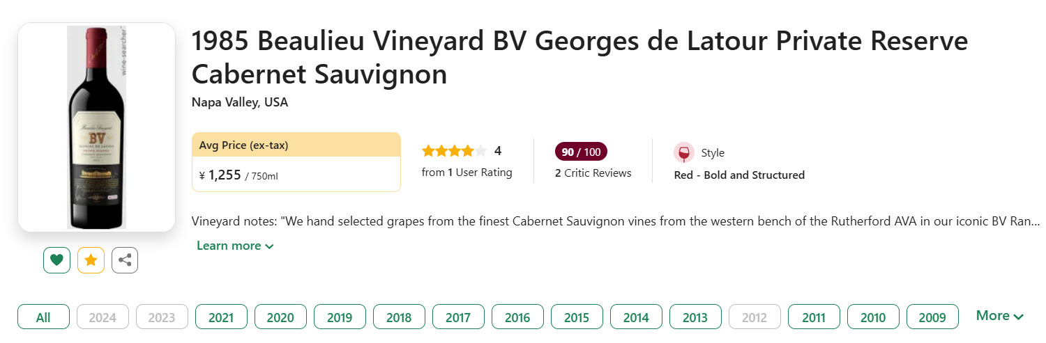 【国均7.9折 !美国前总统偏爱,BV酒庄旗舰款!】Beaulieu Vineyard BV Georges de Latour Private Reserve Cabernet Sauvignon 1985 现货