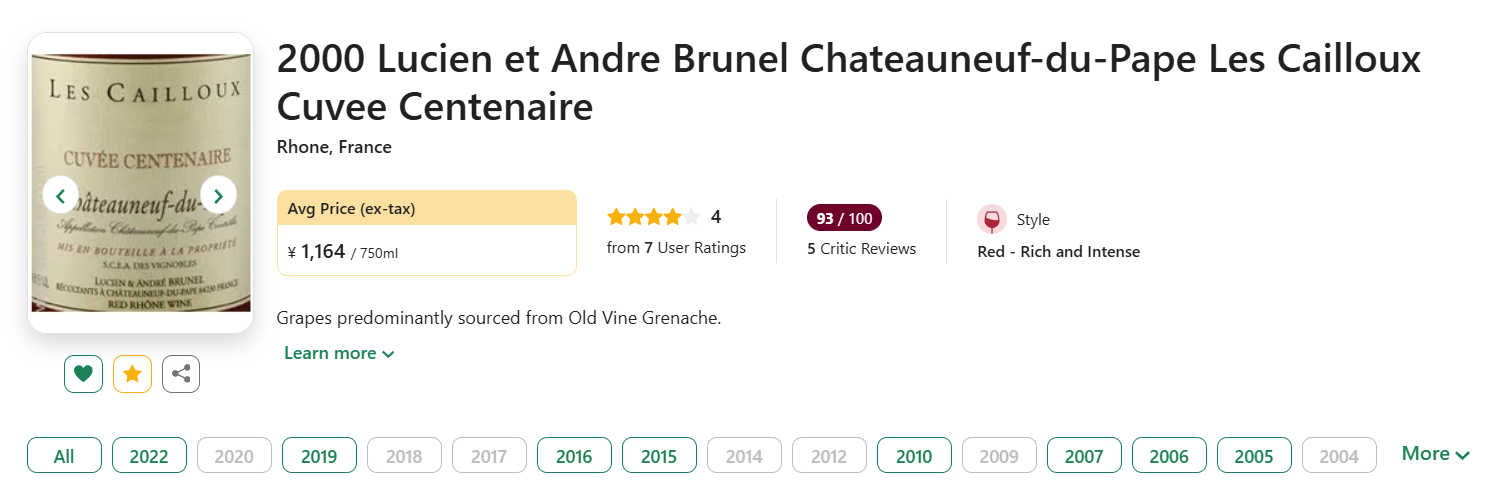 我个人非常喜欢1998 年和 1990 年,但 1989 年的葡萄酒还没有完全成熟。此外,2000年和 2001年的葡萄酒也都非常出色。人生苦短,何不至少品尝一瓶 Andre Brunel 的 Cuvee Centenaire 呢?