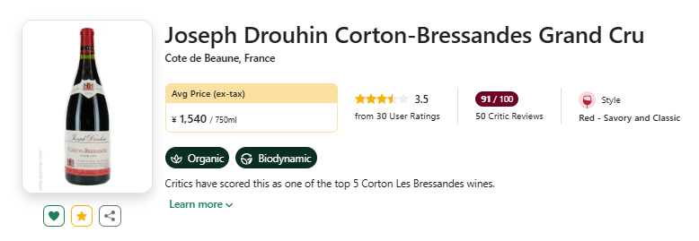 【低均好价!勃艮第百年大名家,优年科通特级地块!!】Joseph Drouhin Corton-Bressandes Grand Cru 2016
