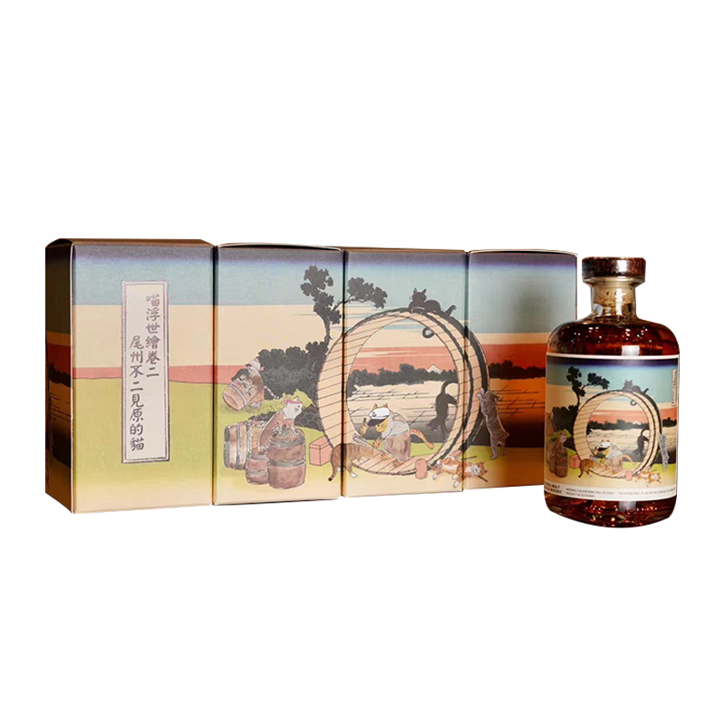 【可爱喵喵+盐津海风!讨喜到无法拒绝!】喵浮世绘 尾州不二见原的猫·调和 麦芽威士忌 500ml