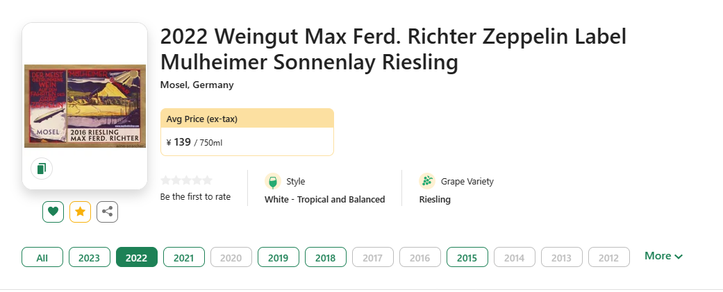 出自德国传承400多年的老牌名家,葡萄来自Mülheimer Sonnenlay单一园,自从上个世纪20年代就在齐柏林飞艇上的豪华餐厅供应,迷人的香气,清爽且层次分明的口感,冲鸭!!!