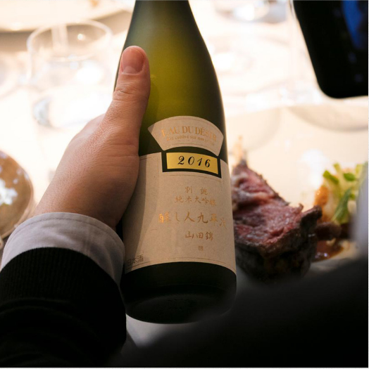 关于这款别誂,还有一个特别的经历。主理人久野九平治在巴黎工作时,已故的Brina(法国葡萄酒届的重量级人物,巴黎老牌的米其林餐厅Taillevant的老板)曾非常赏识九平次的清酒。那是还没有智能手机的时代,所有的商谈都只能依靠上门拜访的方式。当Brina喝了一口,什么话也没有说,让九平次第二天同一时间再来店里。第二天的时候,Brina特地为[别誂]做了合适搭配的料理,并且用黑色的盲品酒杯来装它,能感受到未知的喜悦!久野九平次说,那次的经历他永远不会忘记,当时的那一杯[别誂]无比优雅,豪华和非凡。