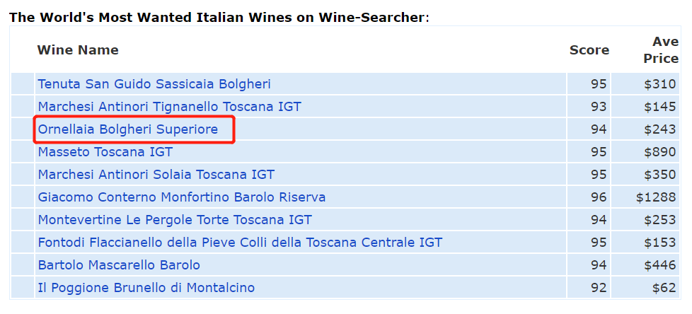 Ornellaia作为意大利四雅之一,在群星璀璨的Bolgheri产区脱颖而出!19年新年份斩获Decanter98、WA97、JS97、JD97、WS96等一系列高分!
