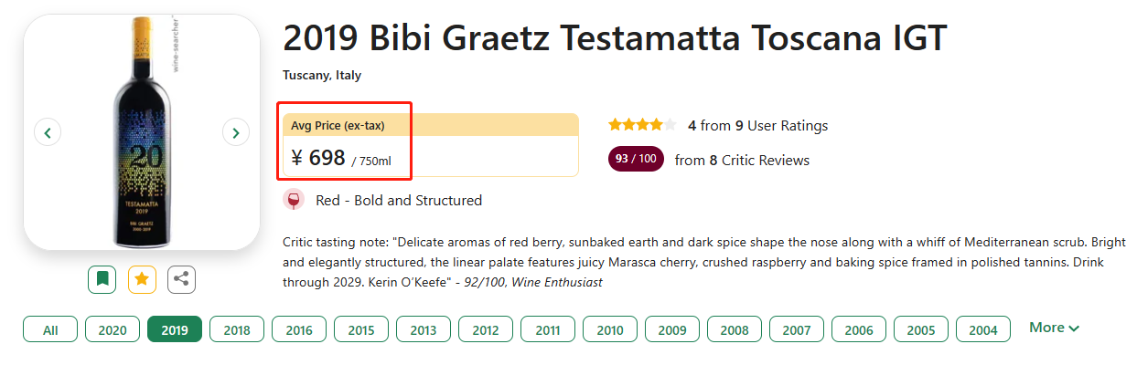 【滴血特卖!20周年主力款!神水力荐酒庄】Bibi Graetz Testamatta Toscana IGT 2019 暴降270元!