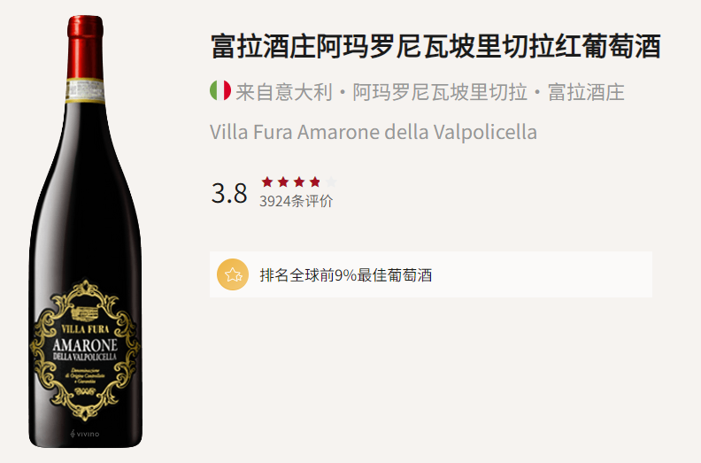 葡萄酒大众点评网站Vivino近四千人评价,口碑超爆!自然风干3到4个月,30天长时间控温发酵,带来新鲜、浓郁、甜美柔顺的口感
