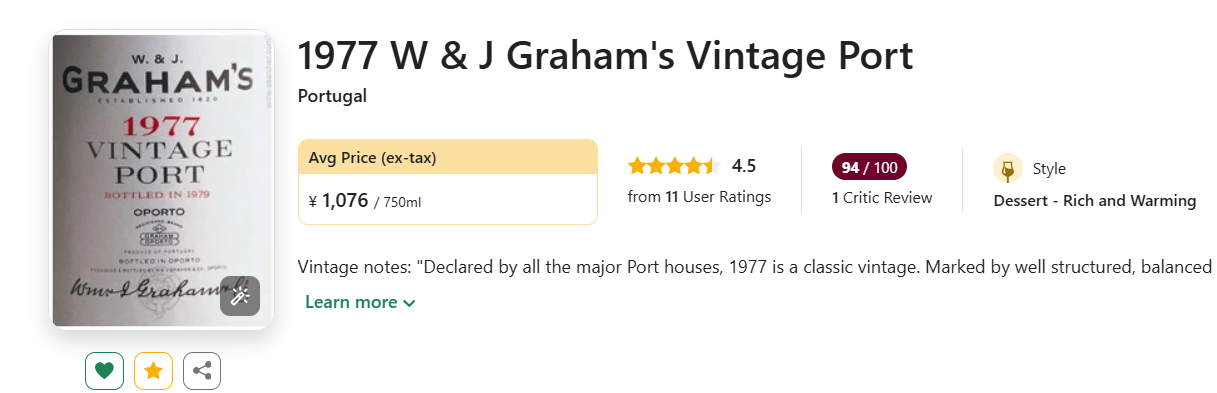 【国均7.9折!近50年岁月沉淀,难得年份老波特!】W & J Graham's Vintage Port 1977